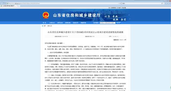 Notice from Shandong housing and urban rural development department on BIM application of fengluyuan