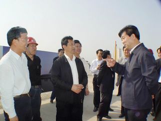 2008年5月5日下午,許立全市長視察建設(shè)中的奧體中心工程。董事長徐鵬強(qiáng)(上圖左一)陪同視察。 |