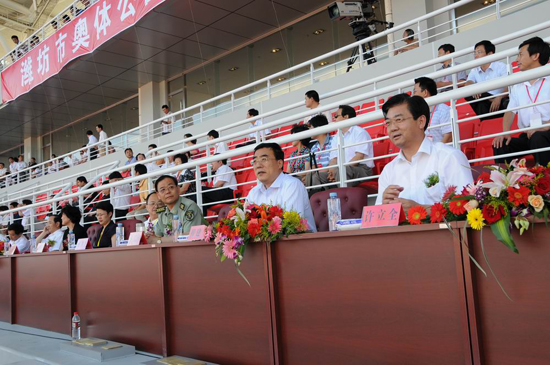 啟動(dòng)儀式由濰坊市人民政府副市長(zhǎng)劉偉主持并致辭,國(guó)家體育局、全運(yùn)會(huì)組委會(huì)、籌委會(huì)相關(guān)領(lǐng)導(dǎo)、濰坊市五大班子領(lǐng)導(dǎo)和黨政機(jī)關(guān)公務(wù)人員以及社會(huì)各界、團(tuán)體計(jì)3萬(wàn)多人參加了啟動(dòng)儀式。劉偉副市長(zhǎng)在致辭中,對(duì)昌大建設(shè)集團(tuán)在一年時(shí)間內(nèi)高標(biāo)準(zhǔn)建成這座現(xiàn)代化體育場(chǎng)給予了高度評(píng)價(jià),對(duì)昌大建設(shè)集團(tuán)對(duì)濰坊城市建設(shè)的突出貢獻(xiàn)給予高度贊揚(yáng)。