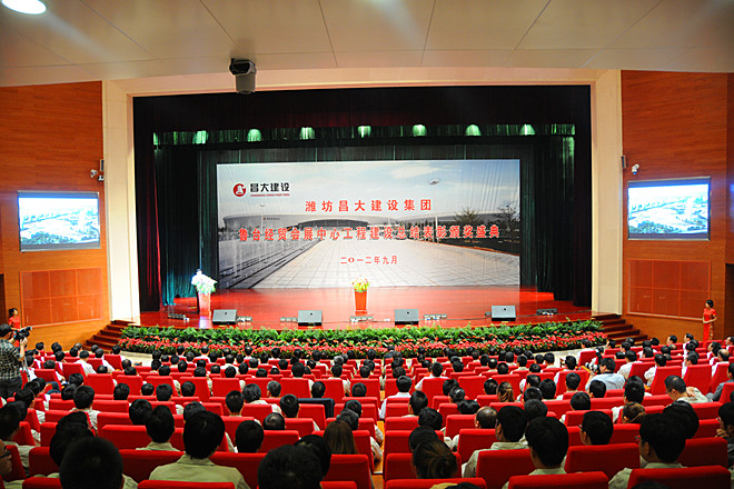 2012年9月29日,秋風送爽,丹桂飄香。在這個金秋收獲的日子里,濰坊昌大建設(shè)集團會展中心工程建設(shè)總結(jié)表彰頒獎盛典在魯臺經(jīng)貿(mào)會展中心的會議中心報告廳隆重舉行。濰坊昌大建設(shè)集團全體高管層領(lǐng)導徐鵬強、朱九洲、滕忠斌、李坤明、姜建魯、穆乃杰、張連悅、張學智、閆鵬、劉雁冰,會展中心工程各參建單位全體參建人員、管理骨干,各分、子公司領(lǐng)導班子成員、管理骨干,集團總部全體人員,集團駐會展中心工程建設(shè)現(xiàn)場指揮部以及應邀參會的安順片區(qū)指揮部、工程設(shè)計、監(jiān)理、咨詢等有關(guān)單位負責人共581人參加了頒獎盛典。應集團的邀請,濰坊市人民政府副市長夏芳晨出席頒獎活動并作重要講話,市政府副秘書長于為凱,市建設(shè)局局長李廣東、副局長張文等出席上述活動。