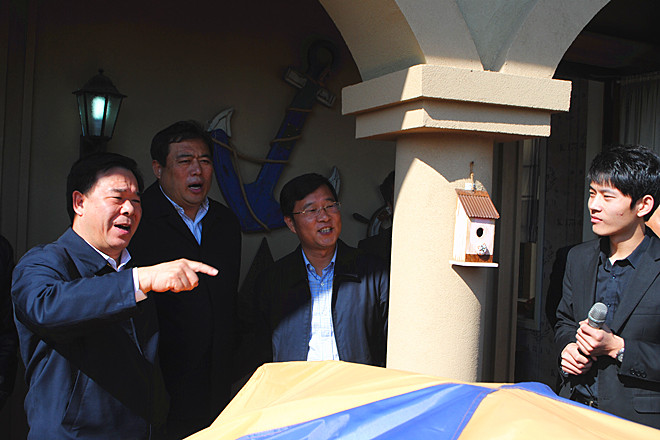 2012年10月18日上午,濰坊市委副書記、市長劉曙光在市政協(xié)副主席、市經(jīng)信委主任李傳恒的陪同下,率領(lǐng)市發(fā)改委、市財政局、市規(guī)劃局、市旅游局等有關(guān)部門負責(zé)人到昌樂參觀調(diào)研卡納圣菲項目。昌樂縣委書記、縣人大常委會主任張新強,縣委副書記、縣長高立波陪同調(diào)研。集團董事長徐鵬強陪同劉曙光參觀調(diào)研并就項目開發(fā)情況作了匯報。