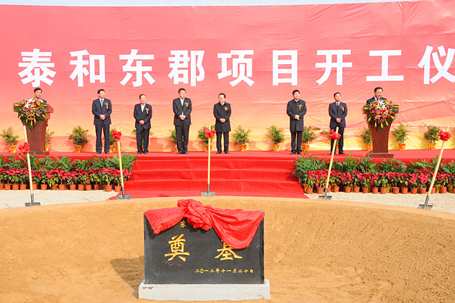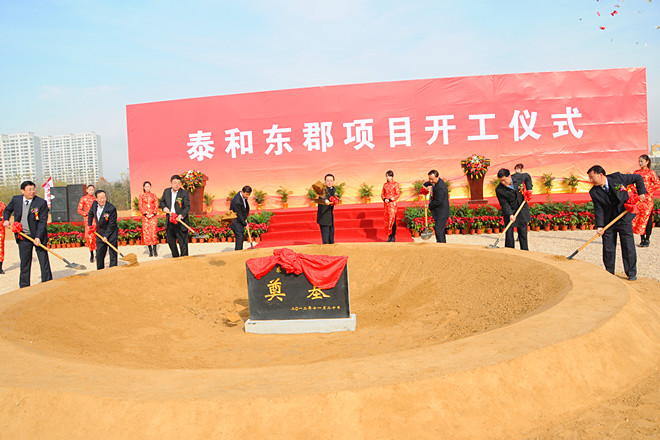 2012年11月20日上午,由集團(tuán)泰和公司開發(fā)的“泰和東郡”項(xiàng)目舉行了隆重的開工奠基儀式。集團(tuán)高管層領(lǐng)導(dǎo)徐鵬強(qiáng)、李坤明、姜建魯、穆乃杰、張連悅、閆鵬、劉雁冰出席開工奠基儀式。出席開工奠基儀式并在主席臺(tái)就位的領(lǐng)導(dǎo)和嘉賓有濰坊市委常委、高新區(qū)黨工委書記、管委會(huì)主任趙志遠(yuǎn),高新區(qū)黨工委副書記、管委會(huì)副主任陳甲才,高新區(qū)黨工委委員、管委會(huì)副主任兼經(jīng)發(fā)局局長曲志剛,高新區(qū)黨工委委員、黨政辦公室主任唐偉,集團(tuán)董事長徐鵬強(qiáng),山東海王銀河醫(yī)藥公司董事長孔憲俊,集團(tuán)副總經(jīng)理兼泰和公司總經(jīng)理姜建魯。集團(tuán)全體中層以上人員、第四分公司部分管理人員參加了開工奠基儀式。開工奠基儀式由高新區(qū)黨工委委員、管委會(huì)副主任譚建民主持。