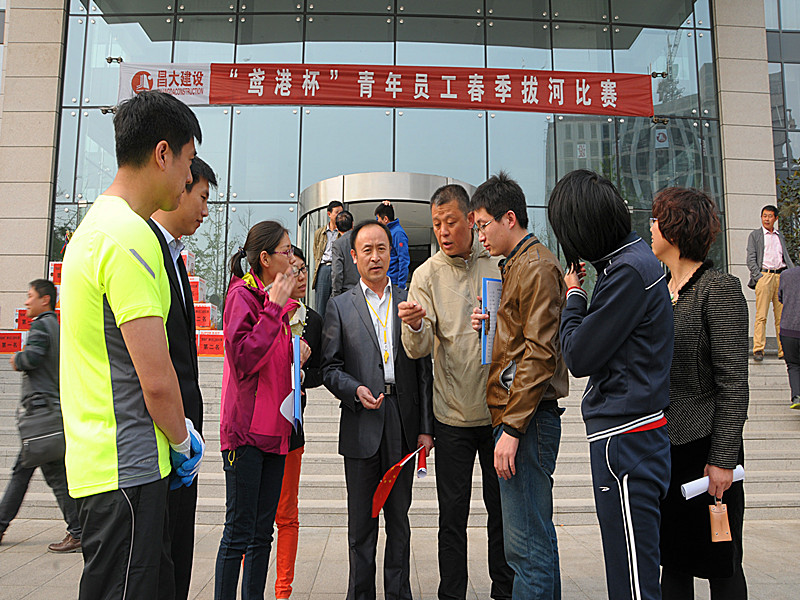 2014年4月11日下午,由集團(tuán)公司團(tuán)委倡導(dǎo)、鳶港裝飾工程有限公司發(fā)起并承辦的“鳶港杯”青年員工春季拔河比賽在辦公大樓前廣場(chǎng)舉行。第一分公司、第二分公司、第三分公司、第四分公司、第五分公司、第六分公司、第七分公司、第八分公司、安裝分公司、機(jī)施分公司、裝飾分公司、裝飾窗業(yè)分公司、物業(yè)分公司、園林公司、泰和公司、鳶港公司、市政公司以及集團(tuán)總部共18支代表隊(duì)參加比賽。集團(tuán)高管層領(lǐng)導(dǎo)滕忠斌、李坤明出席比賽活動(dòng)。