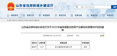 近日,山東省住建廳發(fā)布了《山東省住房和城鄉(xiāng)建設(shè)廳關(guān)于2021年省級(jí)裝配式建筑產(chǎn)業(yè)基地實(shí)施情況評(píng)估的通報(bào)》。山東省共有121家產(chǎn)業(yè)基地通過(guò)評(píng)估,其中,省級(jí)現(xiàn)場(chǎng)評(píng)估的44家產(chǎn)業(yè)基地中,昌大建筑科技有限公司等12家產(chǎn)業(yè)基地評(píng)估結(jié)果為“優(yōu)秀”。
