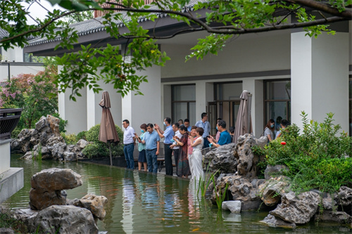 2022年7月6日,由濰坊市民政局社會組織培育中心組織的以“建設(shè)學(xué)習(xí)型協(xié)會、商會組織”為目的的第16期“訪名企、共發(fā)展”學(xué)習(xí)交流活動,走進(jìn)昌大集團參觀交流。濰坊市民政局二級調(diào)研員李凡華率十四家協(xié)會、商會會長、秘書長出席了這次交流活動。集團公司監(jiān)事會主席、紀(jì)委書記、工會主席穆乃杰全程陪同。 該第16期行業(yè)協(xié)會、商會諸位會長、秘書長在集團公司期間,先后參觀了集團企業(yè)展廳、建筑史館、黨建展廊、中頤龍湖康養(yǎng)小鎮(zhèn),深入考察了解了集團公司的發(fā)展,對集團公司的良性發(fā)展給予充分充分肯定和高度評價。在中頤龍湖康養(yǎng)小鎮(zhèn),生活服務(wù)總監(jiān)孫玉闖陪同參觀了小鎮(zhèn)已交付的頤園組團、青龍湖公園、頤樂康養(yǎng)中心及頤養(yǎng)洋房樣板間并為大家做詳細(xì)講解,對康養(yǎng)小鎮(zhèn)規(guī)劃、建設(shè)、運營、康養(yǎng)服務(wù)理念及康養(yǎng)服務(wù)內(nèi)容等方面有了深入的了解。