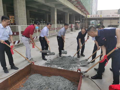 2022年9月28日上午9點58分,由集團四建公司總承包施工的東營市臨床醫(yī)技綜合實踐基地一體化建設(shè)項目——臨床醫(yī)技綜合樓封頂儀式在項目現(xiàn)場隆重舉行。 東營市人民醫(yī)院黨委書記徐新生、院長張振海、副院長岳長春,集團公司董事長徐鵬強、副總裁王建波,山東新開元建設(shè)項目管理有限公司董事長宗輝出席封頂儀式。東營市人民醫(yī)院黨委書記徐新生宣布“封頂”。 參加封頂儀式的還有:集團安裝公司總經(jīng)理劉志偉、裝飾幕墻公司總經(jīng)理付光文,四建公司副總經(jīng)理叢興杰、總經(jīng)理助理馬康文,建設(shè)、監(jiān)理、集團四建公司等相關(guān)單位員工代表100余人。