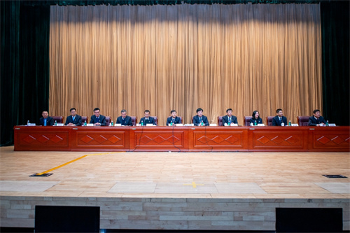 文化宮穹頂璀璨,碧華應(yīng)時?!皥F結(jié)凝聚力量、奮斗創(chuàng)造奇跡,挺膺擔當、不負時代、不負華年,全面推進企業(yè)高質(zhì)量發(fā)展!”的大幅標語催人奮發(fā)。上午九時,會議如期開幕。集團董事長徐鵬強、總裁朱九洲以及穆乃杰、姜建魯、房海、吳杰、劉雁冰、楊成國、惠守江、孟憲禮、王建波等高管出席大會并在主席臺就座。集團第八屆職工代表、列席代表,集團中層管理人員、2022年度受表彰的先進集體代表和先進個人以及總部全體人員共337人參加大會。