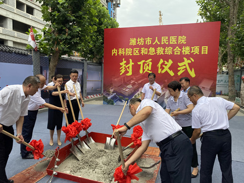 2023年7月25日上午10點(diǎn)18分,由集團(tuán)四建公司、一建公司分別總承包施工的濰坊市人民醫(yī)院內(nèi)科院區(qū)項(xiàng)目、急救綜合樓項(xiàng)目封頂儀式在內(nèi)科院區(qū)項(xiàng)目現(xiàn)場(chǎng)隆重舉行。 濰坊市人民醫(yī)院黨委書記、院長(zhǎng)蘇茂泉,副院長(zhǎng)丁硯生等院方領(lǐng)導(dǎo),集團(tuán)公司董事長(zhǎng)徐鵬強(qiáng)、總工程師房海、副總裁吳杰、王建波,濰坊天鵬建設(shè)監(jiān)理有限公司林少杰、濰坊信一項(xiàng)目管理有限公司 姜文玲、山東經(jīng)緯工程管理有限公司孟凡江、山東世紀(jì)華都工程咨詢有限公司劉玉龍等嘉賓出席儀式。 封頂儀式由丁硯生同志主持,蘇茂泉同志宣布“封頂”并與徐鵬強(qiáng)董事長(zhǎng)及院方領(lǐng)導(dǎo)共同裝填封頂砼。 參加封頂儀式的還有:集團(tuán)一建公司總經(jīng)理周光輝,裝飾幕墻公司總經(jīng)理付光文,安裝工程公司總經(jīng)理劉志偉,第二安裝工程公司總經(jīng)理賈德祥、黨支部書記盧啟東,第二裝飾幕墻公司黨支部書記陳鵬、四建公司副總經(jīng)理叢興杰、第三裝飾幕墻公司副總經(jīng)理徐志明以及項(xiàng)目建設(shè)、監(jiān)理、施工方面的員工代表等100余人。(信息來(lái)源:劉斌)