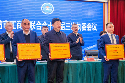 會議傳達學(xué)習(xí)了全國兩會精神、全省高水平開放暨高質(zhì)量招商引資大會和全市工作動員大會精神;通報了2023年度全市工商聯(lián)系統(tǒng)有關(guān)工作情況;宣讀了2023濰坊民營企業(yè)系列百強的通報和2023濰坊民營企業(yè)家百名“敢創(chuàng)先鋒”的通報并為代表進行了頒獎;副市長、工商聯(lián)主席陳端梅代表工商聯(lián)常委會作了工作報告;市委常委、秘書長、統(tǒng)戰(zhàn)部部長趙緒春同志講了話并與濰坊市中級人民法院黨組書記、院長李成濤共同為濰坊市總商會民商事糾紛人民調(diào)解委員會揭牌;大會還報告了會費收支情況,審議通過了有關(guān)人事事項(草案)。 會后,市工商聯(lián)金融服務(wù)中心做總體宣傳推介并進行了相關(guān)政策宣講。