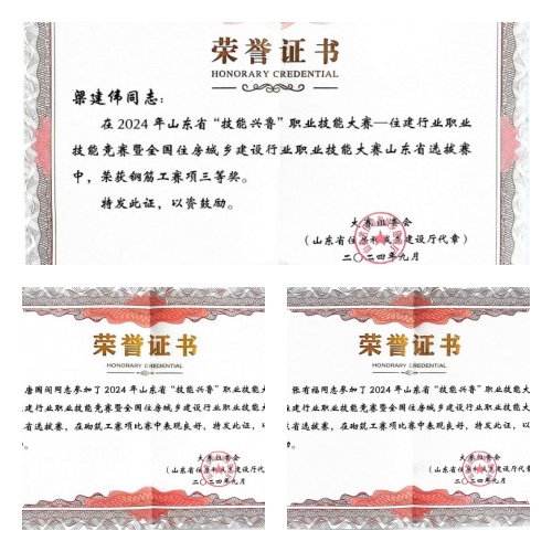 2024年9月8日-12日,山東省住房和城鄉(xiāng)建設(shè)廳舉辦2024年山東省“技能興魯”職業(yè)技能大賽,集團(tuán)公司派員參加鋼筋工和砌筑工賽項(xiàng),并取得鋼筋工三等獎(jiǎng)、砌筑工優(yōu)秀獎(jiǎng)的好成績(jī)。