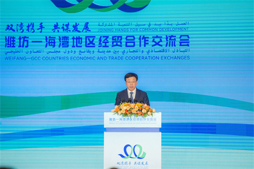 徐鵬強董事長出席濰坊—海灣地區(qū)經(jīng)貿(mào)合作交流會并致辭