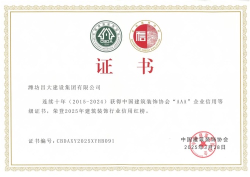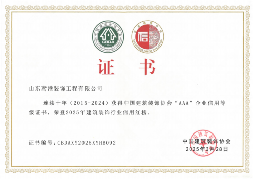 2025年3月28日,中國建筑裝飾協(xié)會在武漢召開了首屆大國裝飾可持續(xù)發(fā)展大會。會上發(fā)布了建筑裝飾行業(yè)信用建設(shè)十年發(fā)展報告,公布了連續(xù)十年(2015-2024)榮獲中國建筑裝飾協(xié)會AAA信用等級企業(yè)名單及2025年度建筑裝飾行業(yè)信用紅榜獲獎名單,并頒發(fā)了榮譽(yù)證書。